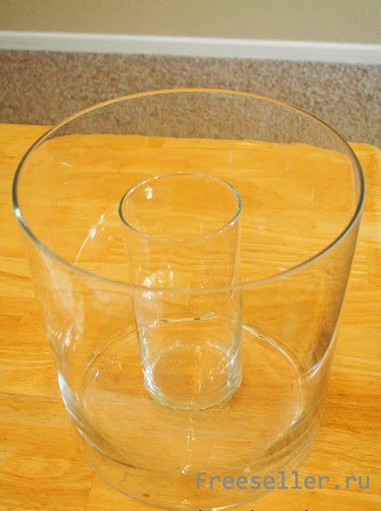 Для декорирования светильника понадобится 2 стеклянных емкости разного объема.