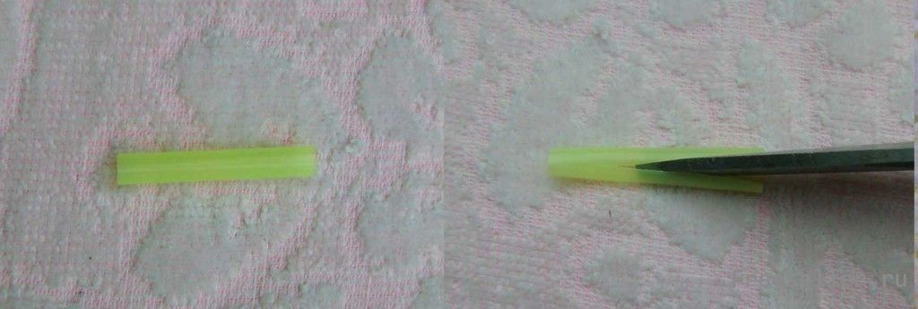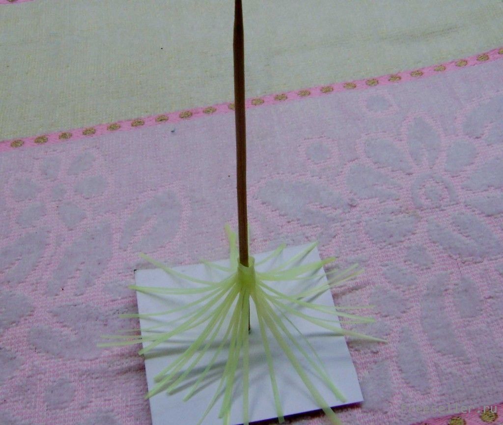 Разрежьте конец палочки на 4 части. Сделайте как на картинке.
