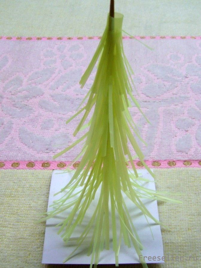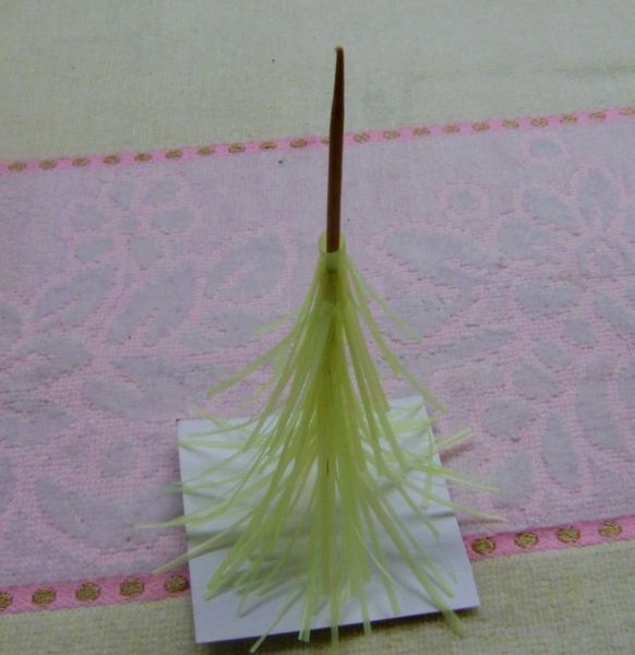 Один за одним прикрепите кусочки соломинки, от самых больших до самых маленьких.