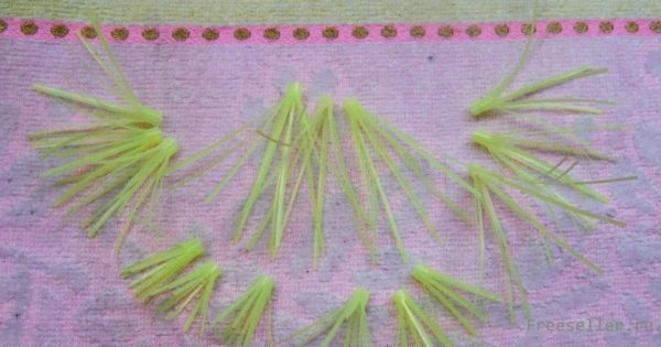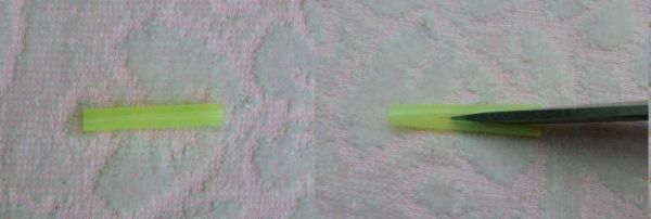 Разрежьте соломинки на 15 частей: 3 по 6 см., 3 по 5 см., 3 по 4 см.,3 по 3 см., 3 по 2 см.