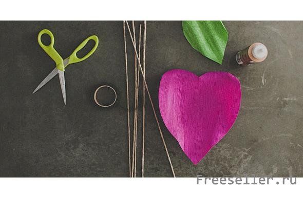 Делаем бутон. Прикрепляйте ,один за другим, лепестки в форме сердца.