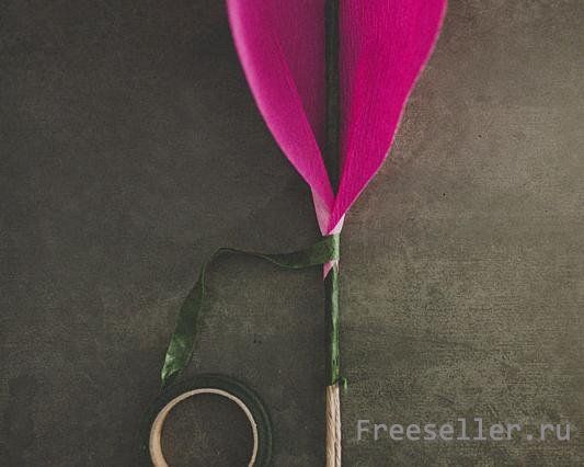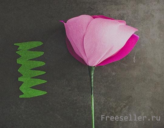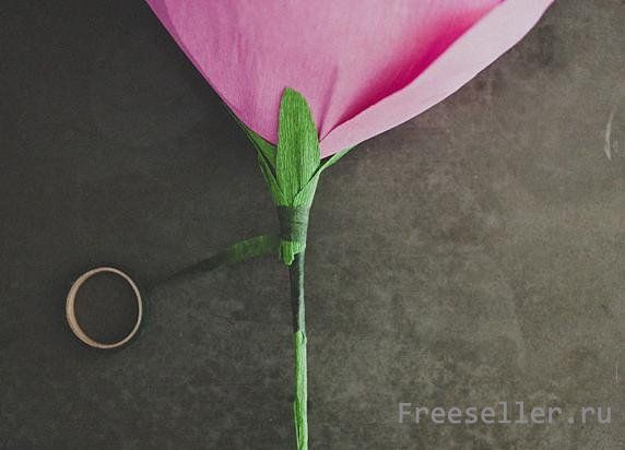 Оберните чашечку из зелёной бумаги вокруг розы.