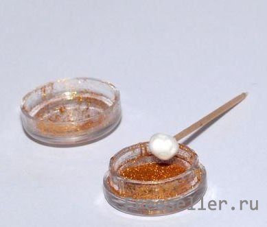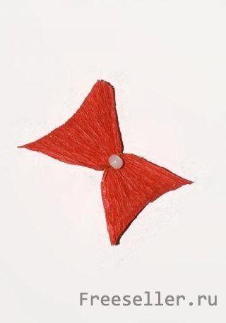 Делаем бантики из красной бумаги и прикрепляем к ним бусинки.