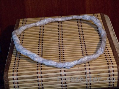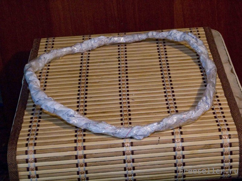 2. После того, как свернули всю бумагу и образовали из неё круг, обматываем её скотчем.