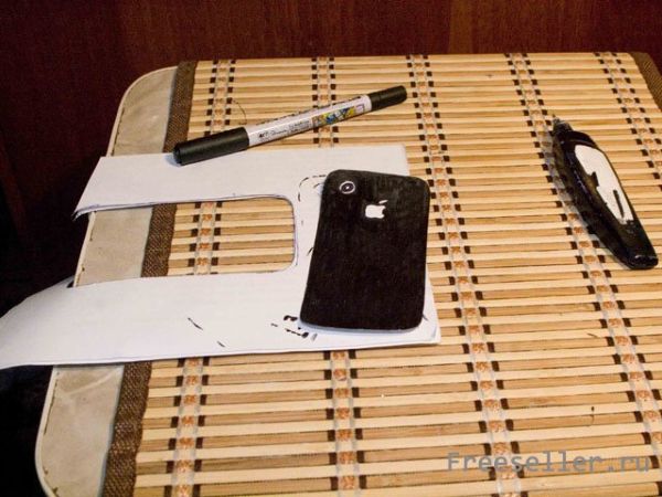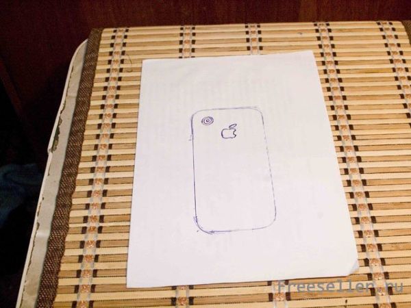 1. Рисуем "айфон" на бумаге. Лично у меня получилось это со второго раза. Я обвела сначала свой телефон, потом перерисовала яблочко из интернета :)