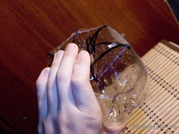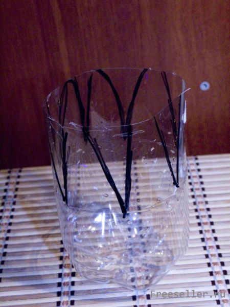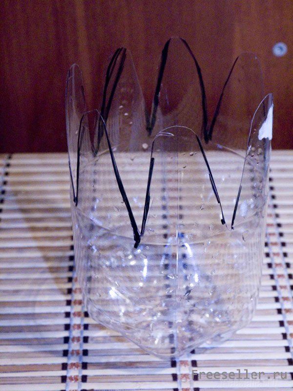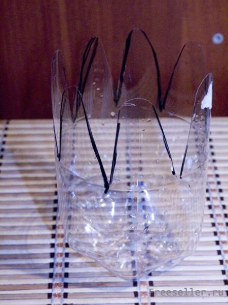 1. Отрезаем половину бутылки. Рисуем маркером "лепестки (4-6 штук).