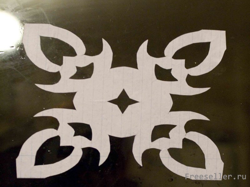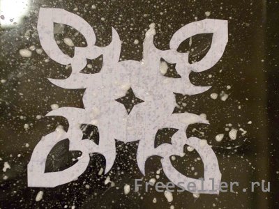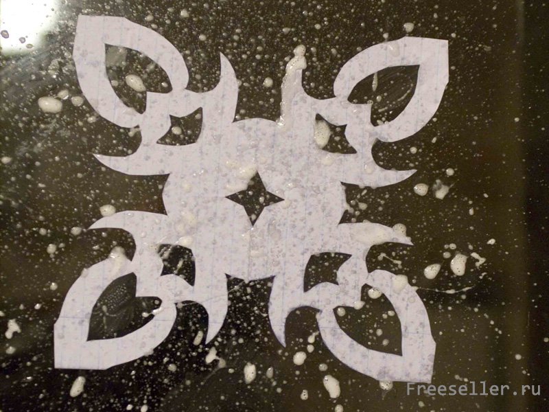 2. Мочим снежинку водой и приклеиваем к окну. Промокаем полотенцем, чтобы не было лишних капель.