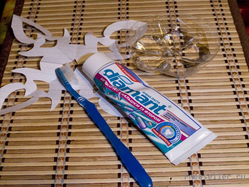 1. Смешиваем зубную пасту с водой до образования полужидкой консистенции.