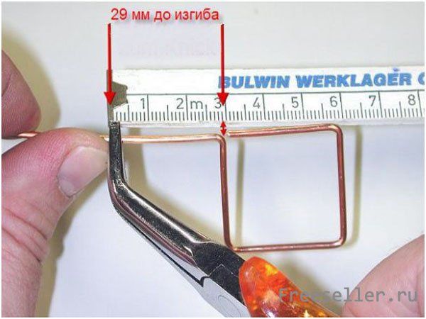 2) Зачищаем кусок медного провода, и начинаем сгибать из нее ромб. Нам нужно чтобы расстояние от середины до середины провода было примерно 30-31 мм.