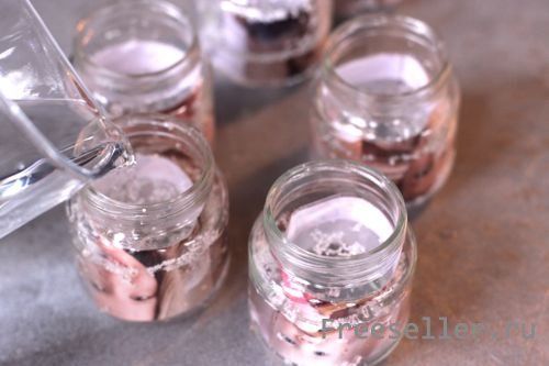 Заливаем внутрь воду, добавляем столовую ложку жидкого глицерина (покупаем в аптеке), который позволит "снежинкам" опускаться при встряхивании медленнее.
