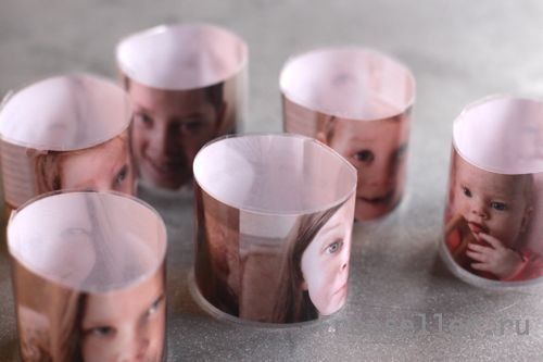 Сворачиваем фото в небольшой цилиндр. который легко поместится внутри баночки.