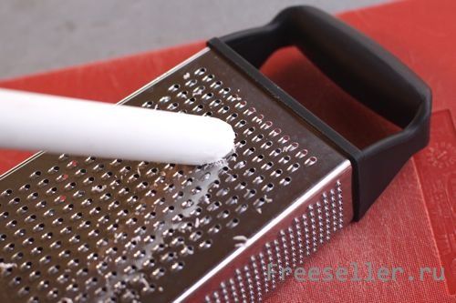 Для "снежинок" натираем на мелкой терке белую пвх-трубку, которую обычно используют для устройства водопроводов и отопления. Можно потереть крышку от пластиковой бутылки.