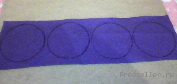 С помощью крышки обведите четыре кружка на фетре и вырежьте их.