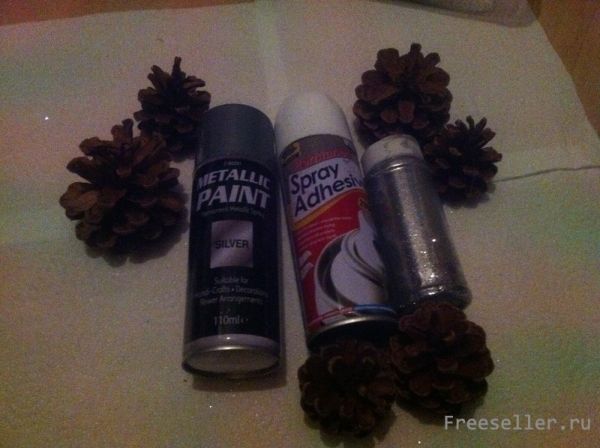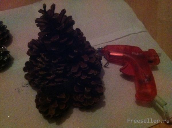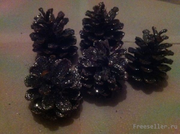 3. Покройте шишки клеем и обваляйте в блёстках.