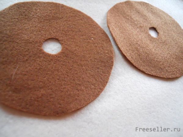 1. Вырежьте два круга-пончика из коричневого или песочного фетра.