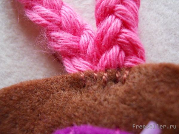 4. Возьмите толстую нить и пришейте зигзаги для "крема" к "глазури".