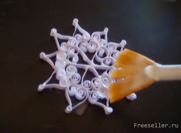 3. Когда кружки подсохнут, покройте всю снежинку клеем.