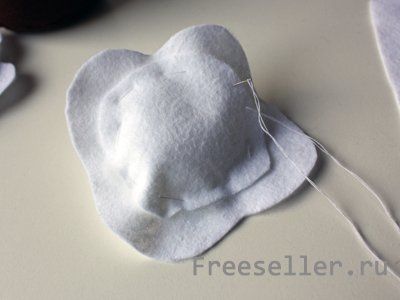 6. Приготовьте "крем". Для этого пришёйте несколько "облачков" друг к другу, от самых больших до самых маленьких.