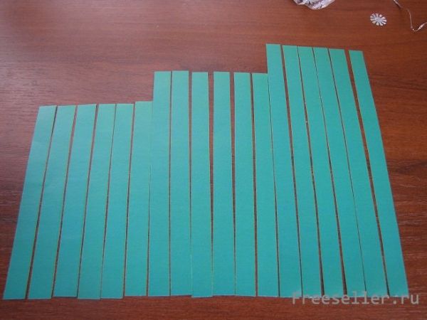От каждого листа отрезаем 18 полосок, по 6 штук одинаковой длины.