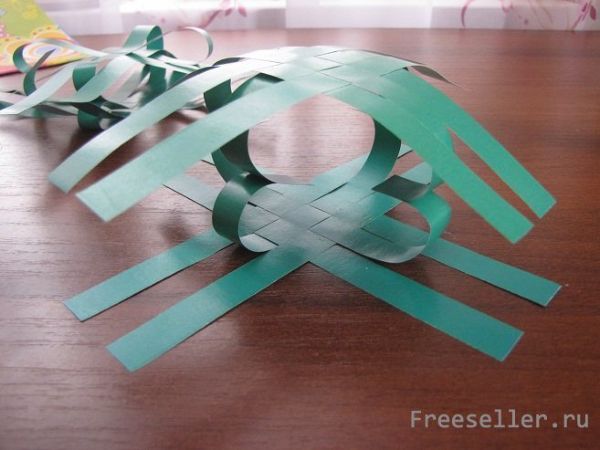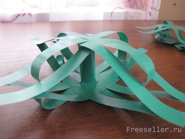 Складываем каждый набор по 6 одинаковых полосок следующим образом, скрепляем переплетение клеем.