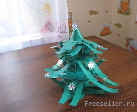 Соединяем элементы, закрепляем макушку и украшаем блестками или дождиком - по желанию, возле такой елочки можно "поселить" устойчивую елочную игрушку.
