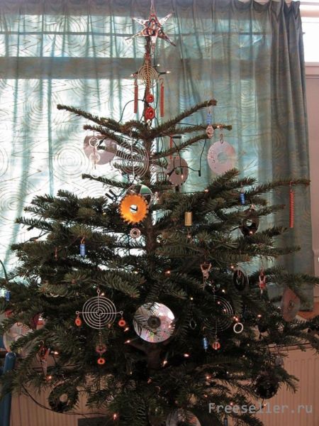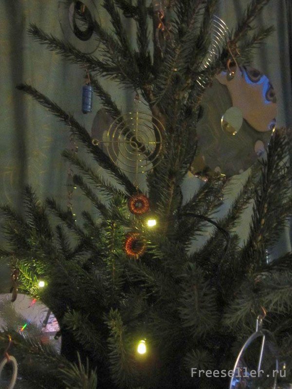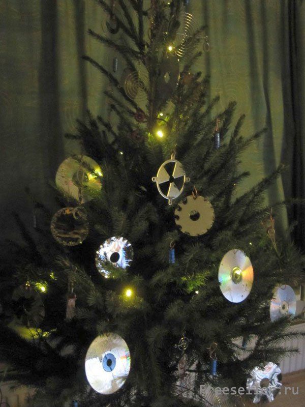 В итоге мы изготовили и украсили новогоднюю елку оригинальными самодельными елочными игрушками из деталей от компьютера.