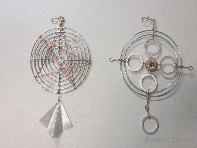 Изготовьте из проволоки крючки, как показано на рисунке. Все игрушки из пластин готовы.