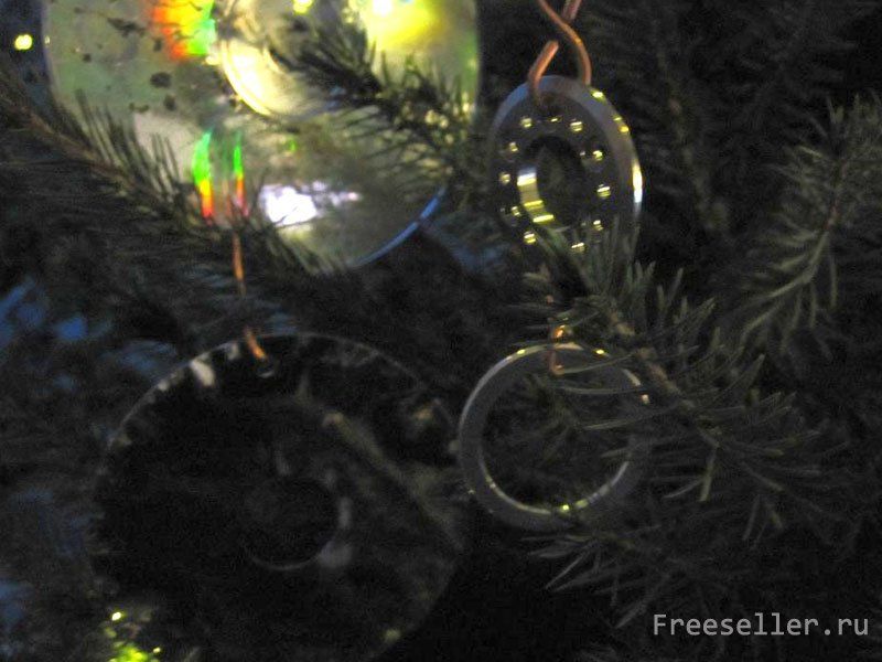 Пластины о жестких дисков послужат основным материалом для изготовления елочных игрушек.