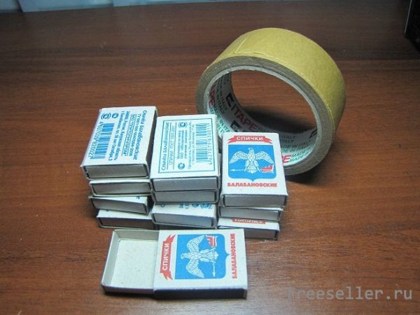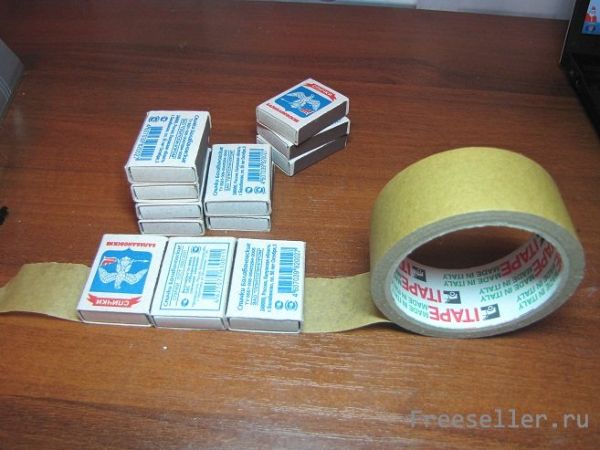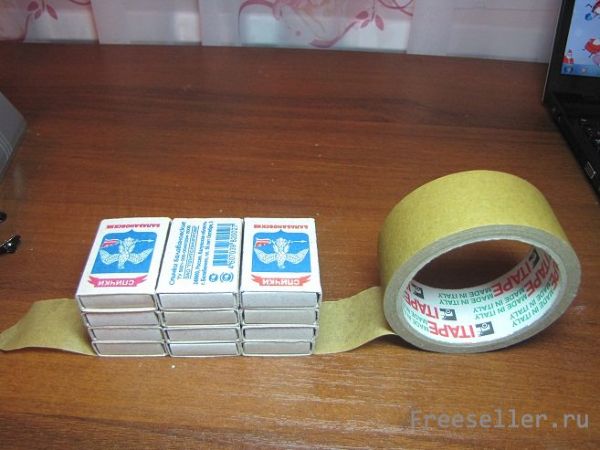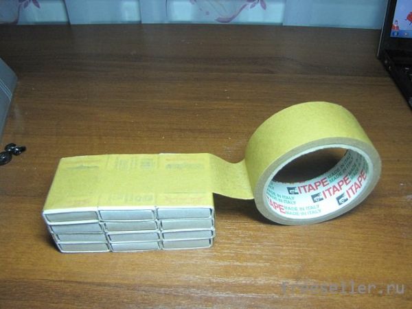 Выкладываем на полоску скотча коробки плотненько друг к другу.