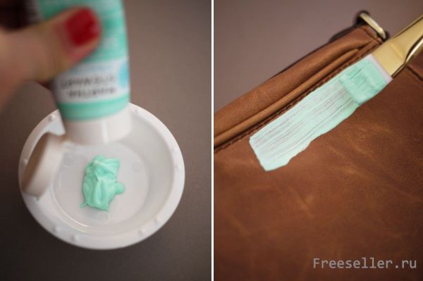 Оборачиваем лентой ремни на сумке. На нужную Вам сторону сумки наносим краски.