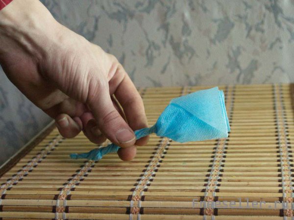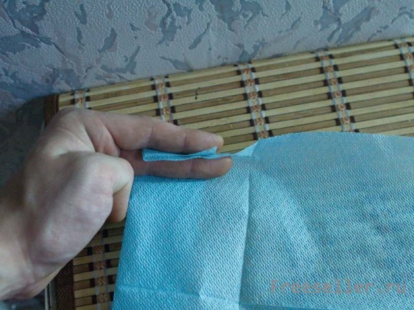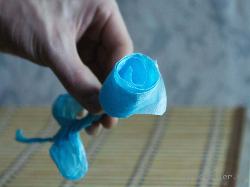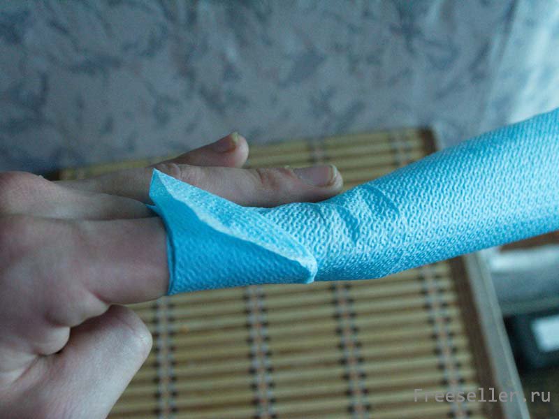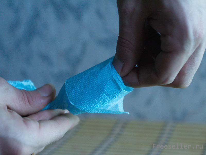 3. Заворачиваем салфетку на 2 пальца как показано на картинке: