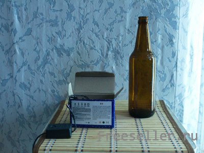 2. Приклеиваем скотчем блок к задней стороне бутылки.