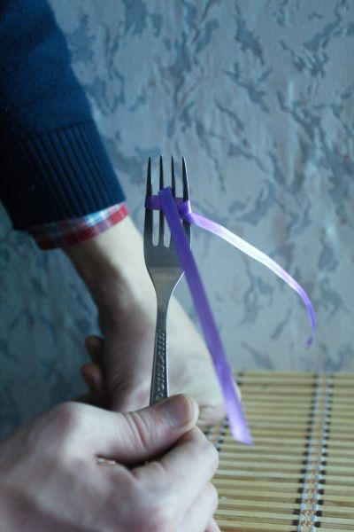 Переворачиваем вилку и аккуратно снимаем бантик. Готово!