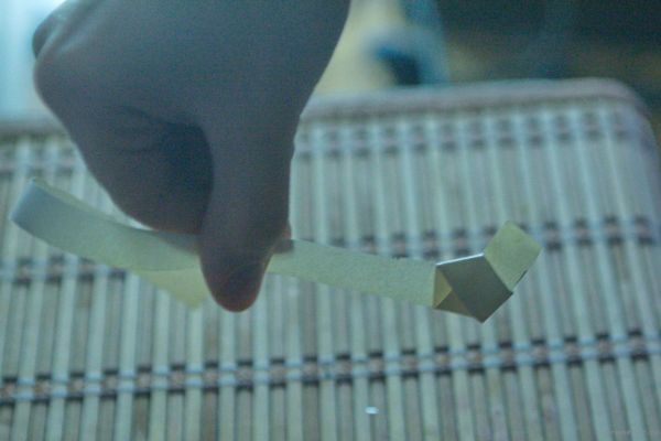 4) Заворачиваем хвостик на обратную сторону. Лучше постараться сделать хвостик короче, чтобы он не выглядывал за пределы пятиугольника.