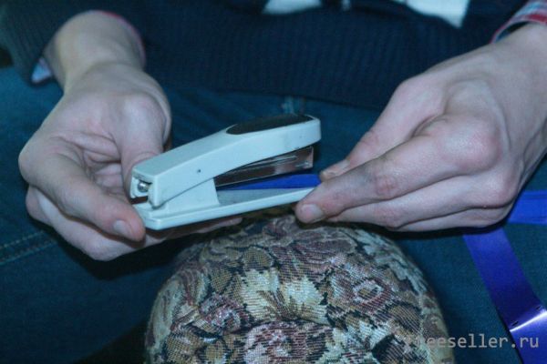 2) Скрепляем их степлером через равное количество отрезков. (1 отрезок~ 10 см)