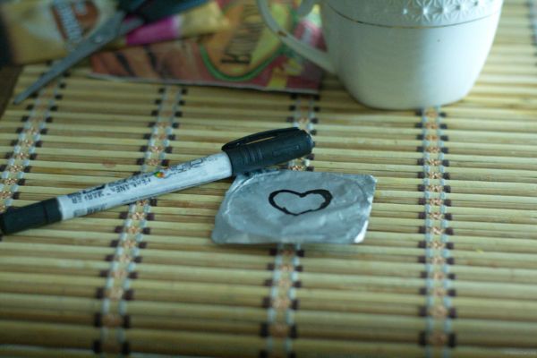 1) Рисуем на крышечке от йогурта нужную фигурку.