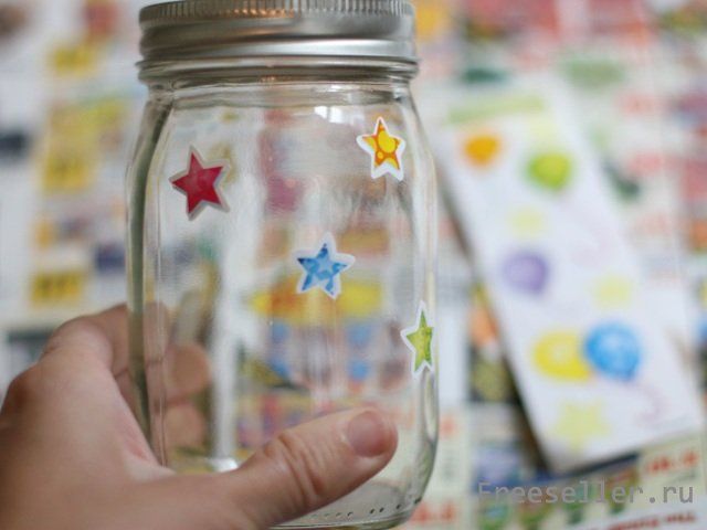 Поместите наклейки в форме звезд на боковую поверхность банки.