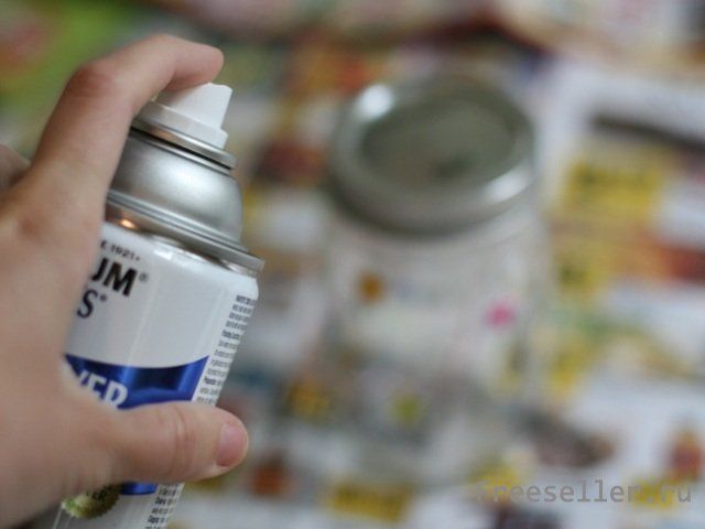 На газету поставьте банку и по банке распылите краску, если необходимо нанесите на банку несколько слоев краски.