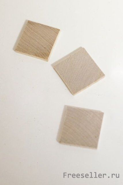 Покрываем деревянные квадратики самоклеющимися кружевами, обрезаем лишние края. Если у вас нет кружев, которые на основе самоклейки, можно их приклеить обычным клеем.
