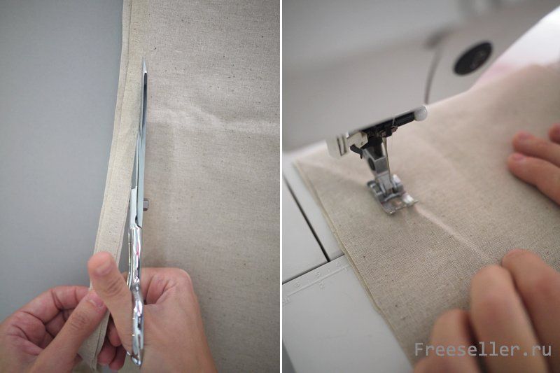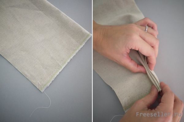 Ткань разрезаем на две прямоугольные части. Складываем пополам, сшиваем вдоль, выравнивая края.