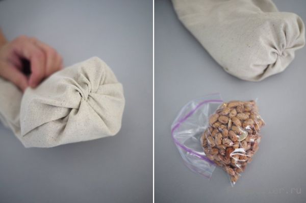 В нижней части трубы нажимаем на пакет с бобами, таким образом, мы заполним пустое пространство в трубе.