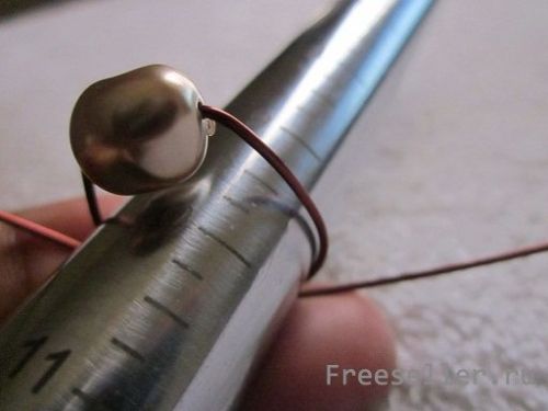 1. Продеваем проволоку через отверстие в жемчужине. Диаметр проволоки должен почти совпадать с диаметром отверстия.