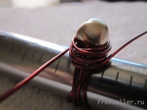 Шаг 3. Сделав 7-8 оборотов вокруг сердечника, закручиваем проволоку вокруг жемчужины.