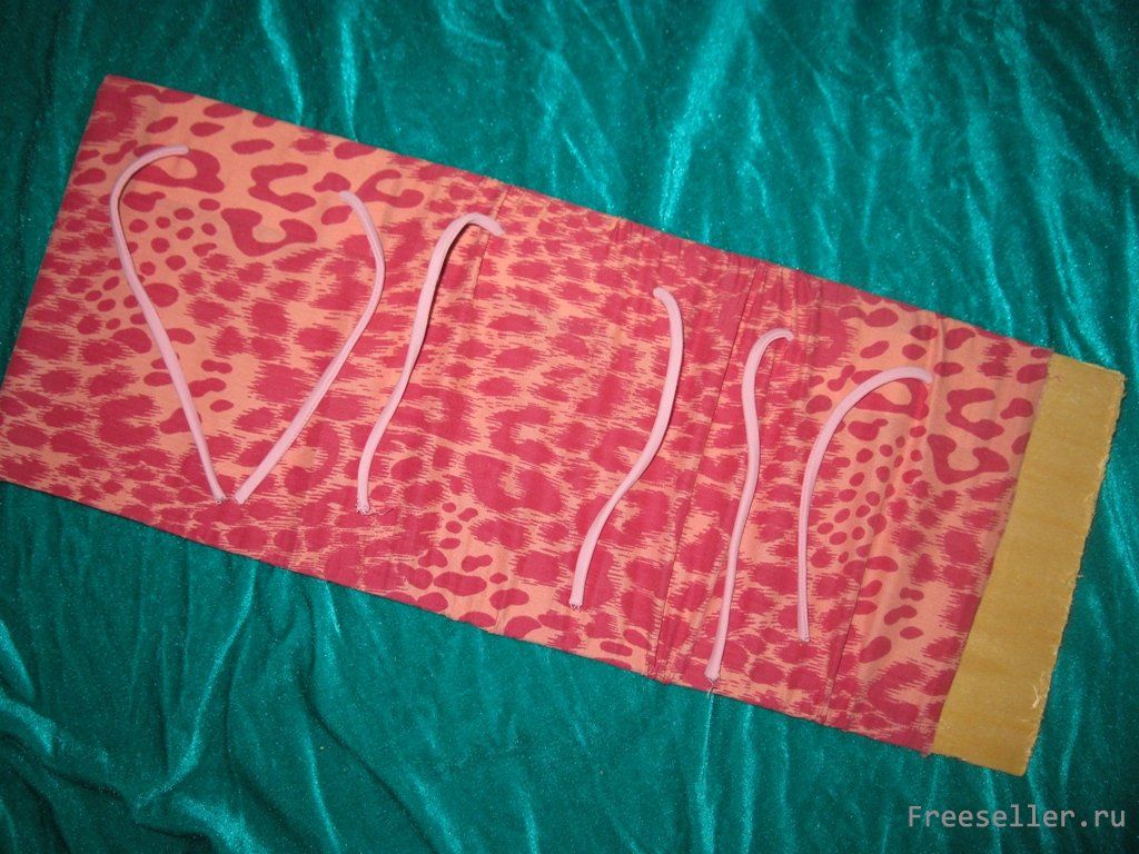 4 - сшиваем прямоугольник ткани с двух сторон, выворачиваем, шилом делаем дырки симметрично дыркам на корешках файлов;