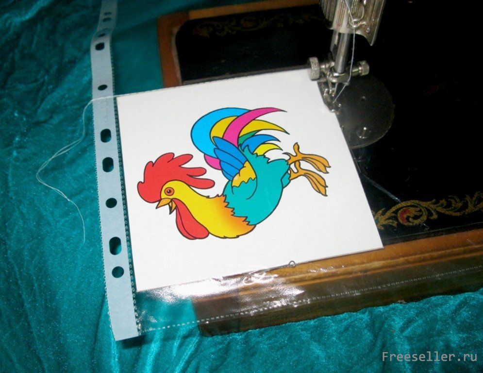 1 - берем 2 карточки, складываем вместе картинками наружу (обратите внимание, чтобы при перевороте карточка, что находится снизу, была не вверх ногами), вставляем в файл (симметрично дырочкам на его корешке) и застрачиваем с трех сторон (предварительно закрепив их, чтобы не сдвинулись, с помощью булавок);