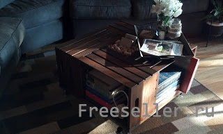 Подобный столик можно найти в интернете на различных аукционах. Совсем несложно смастерить такой журнальный столик из винных ящиков своими руками.