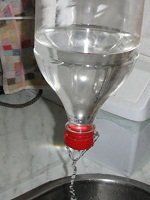 Проверяем, плотно ли закрыта крышка, наливаем воду. Подвешиваем бутылку в удобное место, чтобы удобно помыть руки нужно немного отвернуть крышку и потом вернуть ее обратно.