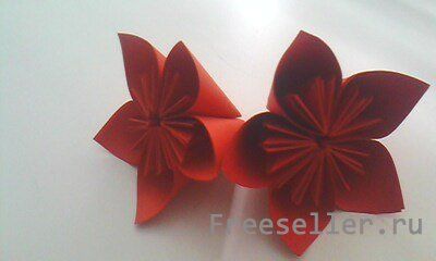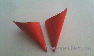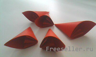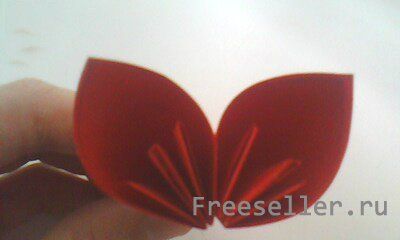 6. Так же сделать все 5 лепестков. Затем намазать лепестки клеем по бокам и приклеить друг к другу.