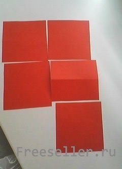 1. Для этого нужно взять 5 одинаковых квадратов( я брал 10х10 см.)