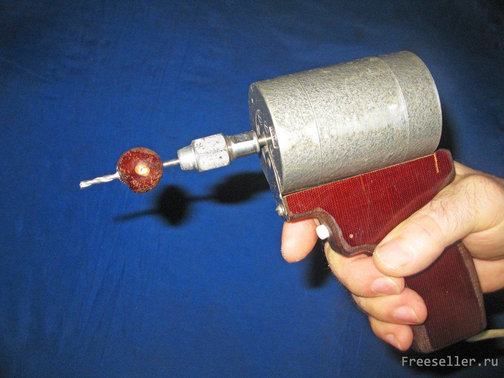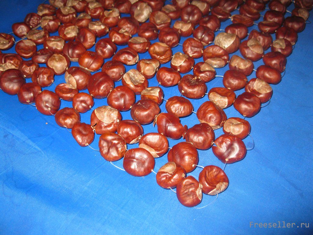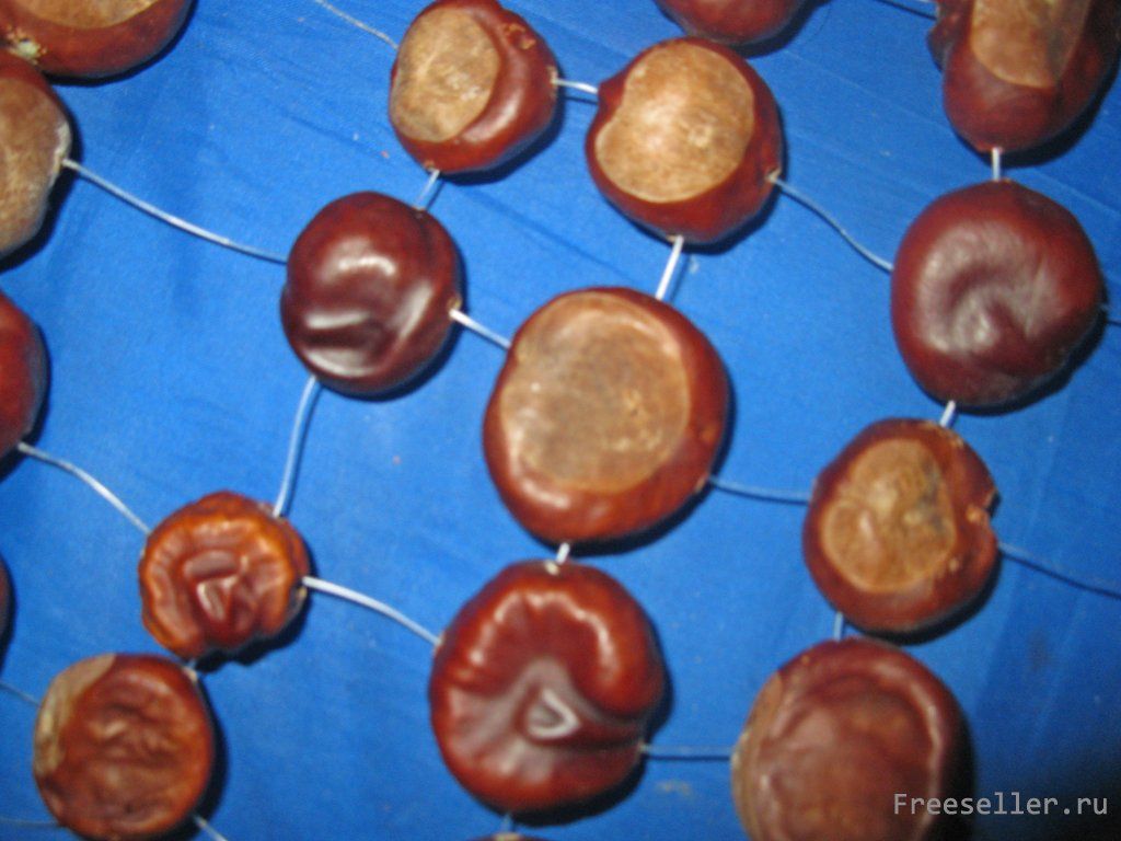 1) Делаем электродрелью 2 сквозных отверстия в каштанах перпендикулярно друг другу;